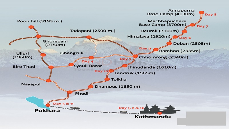 Working through a flat level after an hour climb down to Kimrong Khola and start ascending you will work through rhododendron forest and nice terraces. Having a lunch in Ghandruk. An ideal vantage point in this pristine village offers breathtaking views of Annapurna South, Gangapurna, Annapurna III, Machhapuchhare, and Hiunchuli, continue working to Birethanti along the terraced fields beneath the splendid panorama of awe-inspiring glaciated Himalayan mountain ranges, from Nayapul drive back to Pokhara.